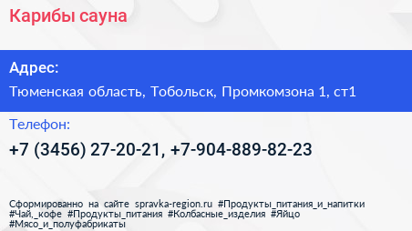 Карибы, сауна по адресу Тюменская область, Тобольск, Промкомзона 1, ст1 в дальнейшем Организация, размещена в следующих категориях: