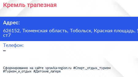 Кремль, трапезная по адресу 626152, Тюменская область, Тобольск, Красная площадь, 5 ст7 в дальнейшем Организация, размещена в следующих категориях: