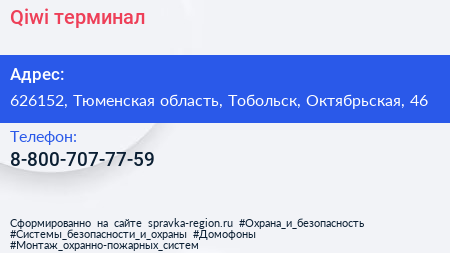 Qiwi, терминал по адресу 626152, Тюменская область, Тобольск, Октябрьская, 46 в дальнейшем Организация, размещена в следующих категориях: