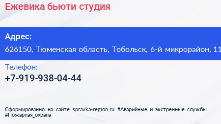 Ежевика, бьюти-студия по адресу 626150, Тюменская область, Тобольск, 6-й микрорайон, 11 в дальнейшем Организация, размещена в следующих категориях:
