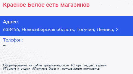 Красное & Белое, сеть магазинов по адресу 633456, Новосибирская область, Тогучин, Ленина, 2 в дальнейшем Организация, размещена в следующих категориях: