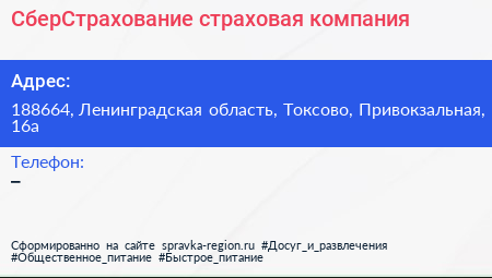 СберСтрахование, страховая компания по адресу 188664, Ленинградская область, Токсово, Привокзальная, 16а в дальнейшем Организация, размещена в следующих категориях: