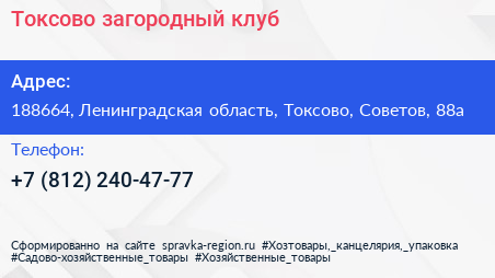 Токсово, загородный клуб по адресу 188664, Ленинградская область, Токсово, Советов, 88а в дальнейшем Организация, размещена в следующих категориях: