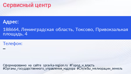 Сервисный центр по адресу 188664, Ленинградская область, Токсово, Привокзальная площадь, 4 в дальнейшем Организация, размещена в следующих категориях: