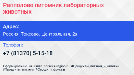 Рапполово, питомник лабораторных животных по адресу Заброшенное здание, Центральная улица, Рапполово, Токсовское городское поселение, Всеволожский район, Ленинградская область, Северо-Западный федеральный округ, 188667, Россия в дальнейшем Организация, размещена в следующих категориях: