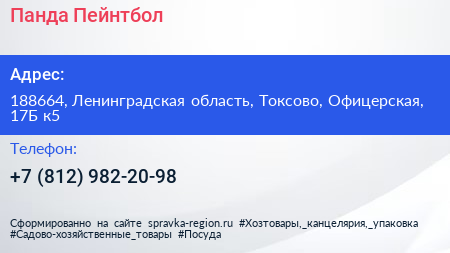 Панда Пейнтбол по адресу 188664, Ленинградская область, Токсово, Офицерская, 17Б к5 в дальнейшем Организация, размещена в следующих категориях: