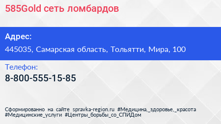 585Gold, сеть ломбардов по адресу 445035, Самарская область, Тольятти, Мира, 100 в дальнейшем Организация, размещена в следующих категориях: