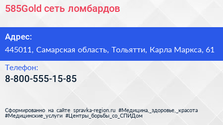 585Gold, сеть ломбардов по адресу 445011, Самарская область, Тольятти, Карла Маркса, 61 в дальнейшем Организация, размещена в следующих категориях: