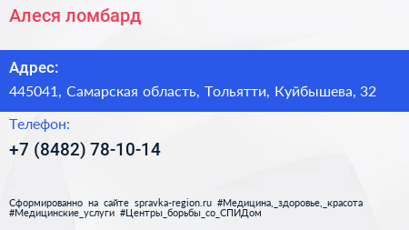 Алеся, ломбард по адресу 445041, Самарская область, Тольятти, Куйбышева, 32 в дальнейшем Организация, размещена в следующих категориях: