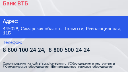 Банк ВТБ по адресу 445029, Самарская область, Тольятти, Революционная, 11Б в дальнейшем Организация, размещена в следующих категориях: