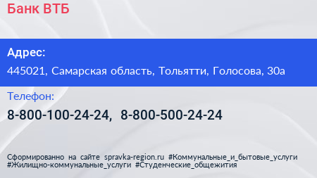 Банк ВТБ по адресу 445021, Самарская область, Тольятти, Голосова, 30а в дальнейшем Организация, размещена в следующих категориях: