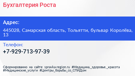 Бухгалтерия Роста по адресу 445028, Самарская область, Тольятти, бульвар Королёва, 13 в дальнейшем Организация, размещена в следующих категориях: