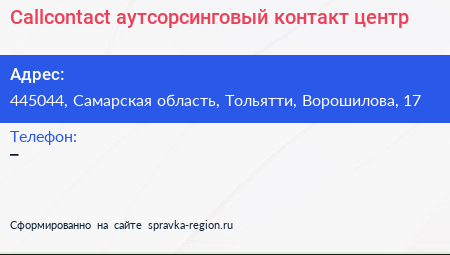 Callcontact, аутсорсинговый контакт-центр по адресу 445044, Самарская область, Тольятти, Ворошилова, 17 в дальнейшем Организация, размещена в следующих категориях: