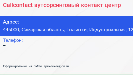 Callcontact, аутсорсинговый контакт-центр по адресу 445000, Самарская область, Тольятти, Индустриальная, 12 в дальнейшем Организация, размещена в следующих категориях: