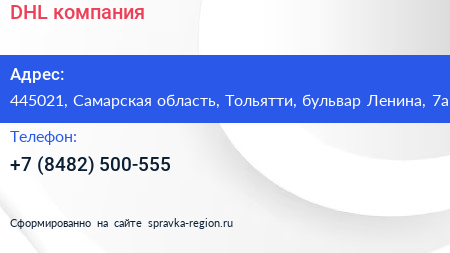 DHL, компания по адресу 445021, Самарская область, Тольятти, бульвар Ленина, 7а в дальнейшем Организация, размещена в следующих категориях: