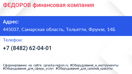 ФЕДОРОВ, финансовая компания по адресу 445037, Самарская область, Тольятти, Фрунзе, 14Б в дальнейшем Организация, размещена в следующих категориях: