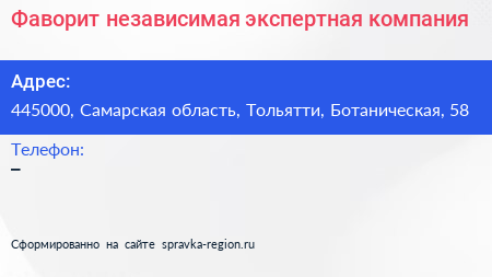 Фаворит, независимая экспертная компания по адресу 445000, Самарская область, Тольятти, Ботаническая, 58 в дальнейшем Организация, размещена в следующих категориях: