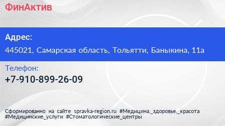 ФинАктив по адресу 445021, Самарская область, Тольятти, Баныкина, 11а в дальнейшем Организация, размещена в следующих категориях: