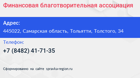 Финансовая благотворительная ассоциация по адресу 445022, Самарская область, Тольятти, Толстого, 34 в дальнейшем Организация, размещена в следующих категориях: