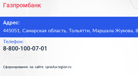 Газпромбанк по адресу 445051, Самарская область, Тольятти, Маршала Жукова, 8 в дальнейшем Организация, размещена в следующих категориях: