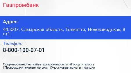 Газпромбанк по адресу 445007, Самарская область, Тольятти, Новозаводская, 8 ст1 в дальнейшем Организация, размещена в следующих категориях: