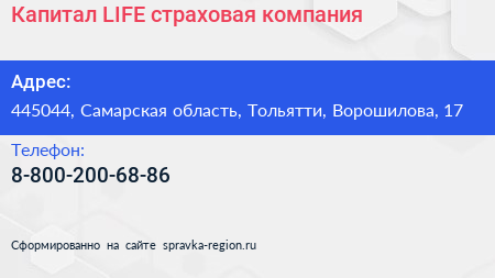 Капитал LIFE, страховая компания по адресу 445044, Самарская область, Тольятти, Ворошилова, 17 в дальнейшем Организация, размещена в следующих категориях: