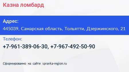 Казна, ломбард по адресу 445039, Самарская область, Тольятти, Дзержинского, 21 в дальнейшем Организация, размещена в следующих категориях: