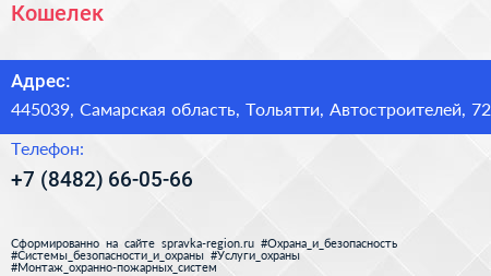 Кошелек по адресу 445039, Самарская область, Тольятти, Автостроителей, 72 в дальнейшем Организация, размещена в следующих категориях: