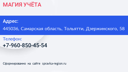МАГИЯ УЧЁТА по адресу 445036, Самарская область, Тольятти, Дзержинского, 58 в дальнейшем Организация, размещена в следующих категориях: