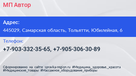 МП Автор по адресу 445029, Самарская область, Тольятти, Юбилейная, 6 в дальнейшем Организация, размещена в следующих категориях: