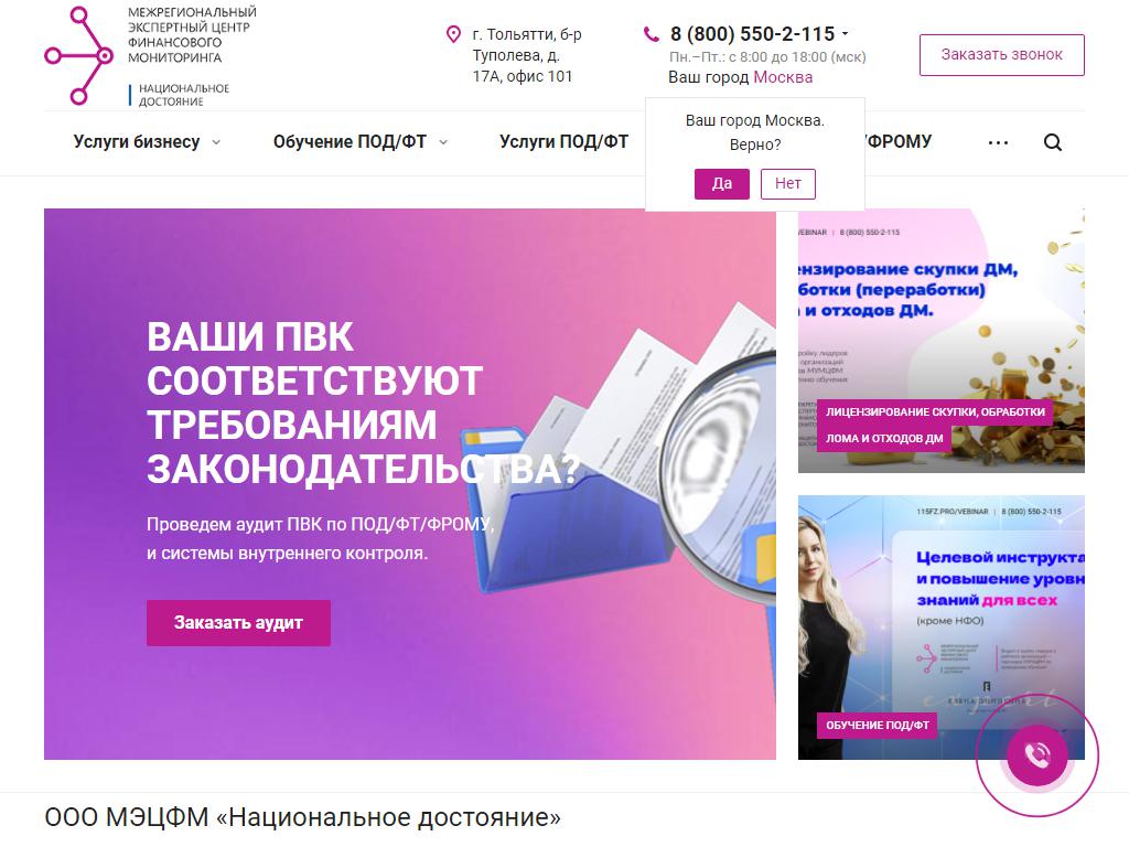 Национальное достояние, межрегиональный экспертный центр финансового мониторинга по адресу 445040, Самарская область, Тольятти, бульвар Туполева, 17а в дальнейшем Организация, размещена в следующих категориях:
