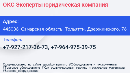 ОКС Эксперты, юридическая компания по адресу 445036, Самарская область, Тольятти, Дзержинского, 76 в дальнейшем Организация, размещена в следующих категориях: