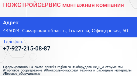 ПОЖСТРОЙСЕРВИС, монтажная компания по адресу 445024, Самарская область, Тольятти, Офицерская, 60 в дальнейшем Организация, размещена в следующих категориях: