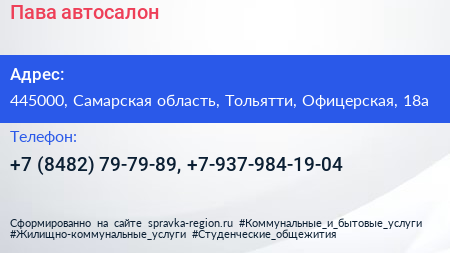 Пава, автосалон по адресу 445000, Самарская область, Тольятти, Офицерская, 18а в дальнейшем Организация, размещена в следующих категориях: