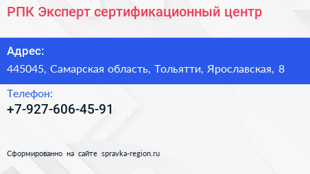 РПК Эксперт, сертификационный центр по адресу 445045, Самарская область, Тольятти, Ярославская, 8 в дальнейшем Организация, размещена в следующих категориях: