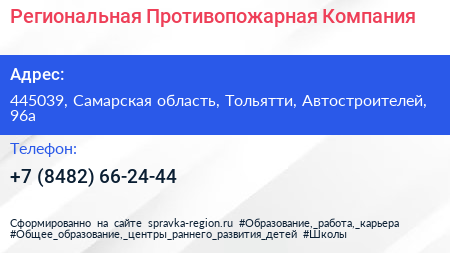 Региональная Противопожарная Компания по адресу 445039, Самарская область, Тольятти, Автостроителей, 96а в дальнейшем Организация, размещена в следующих категориях: