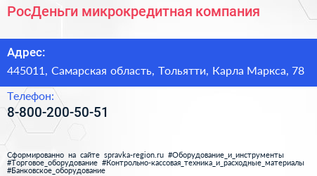 РосДеньги, микрокредитная компания по адресу 445011, Самарская область, Тольятти, Карла Маркса, 78 в дальнейшем Организация, размещена в следующих категориях: