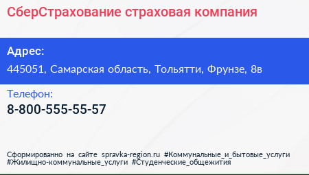 СберСтрахование, страховая компания по адресу 445051, Самарская область, Тольятти, Фрунзе, 8в в дальнейшем Организация, размещена в следующих категориях: