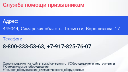 Служба помощи призывникам по адресу 445044, Самарская область, Тольятти, Ворошилова, 17 в дальнейшем Организация, размещена в следующих категориях:
