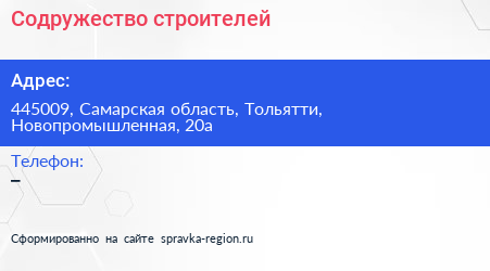 Содружество строителей по адресу 445009, Самарская область, Тольятти, Новопромышленная, 20а в дальнейшем Организация, размещена в следующих категориях: