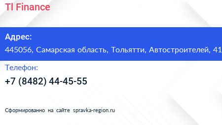 Tl-Finance по адресу 445056, Самарская область, Тольятти, Автостроителей, 41 в дальнейшем Организация, размещена в следующих категориях: