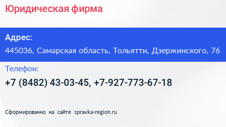 Юридическая фирма по адресу 445036, Самарская область, Тольятти, Дзержинского, 76 в дальнейшем Организация, размещена в следующих категориях: