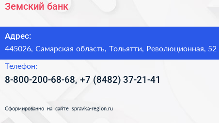 Земский банк по адресу 445026, Самарская область, Тольятти, Революционная, 52 в дальнейшем Организация, размещена в следующих категориях: