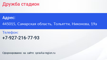 Дружба, стадион по адресу 445015, Самарская область, Тольятти, Никонова, 19а в дальнейшем Организация, размещена в следующих категориях: