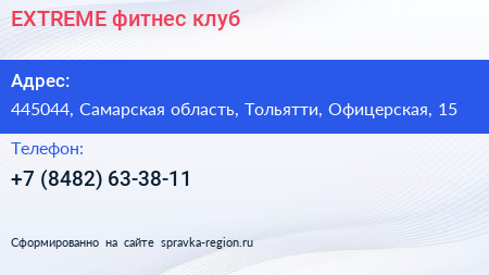 EXTREME, фитнес-клуб по адресу 445044, Самарская область, Тольятти, Офицерская, 15 в дальнейшем Организация, размещена в следующих категориях: