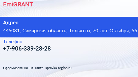 EmiGRANT по адресу 445031, Самарская область, Тольятти, 70 лет Октября, 56 в дальнейшем Организация, размещена в следующих категориях: