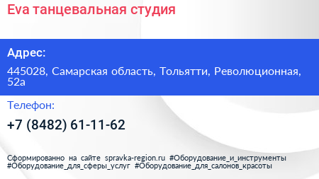 Eva, танцевальная студия по адресу 445028, Самарская область, Тольятти, Революционная, 52а в дальнейшем Организация, размещена в следующих категориях: