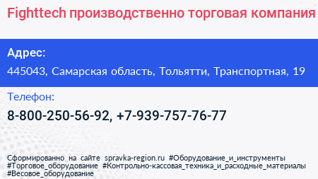 Fighttech, производственно-торговая компания по адресу 445043, Самарская область, Тольятти, Транспортная, 19 в дальнейшем Организация, размещена в следующих категориях: