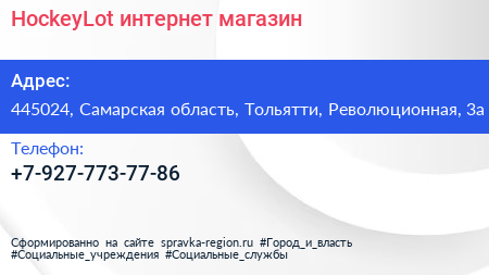 HockeyLot, интернет-магазин по адресу 445024, Самарская область, Тольятти, Революционная, 3а в дальнейшем Организация, размещена в следующих категориях: