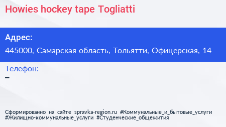 Howies hockey tape Togliatti по адресу 445000, Самарская область, Тольятти, Офицерская, 14 в дальнейшем Организация, размещена в следующих категориях: